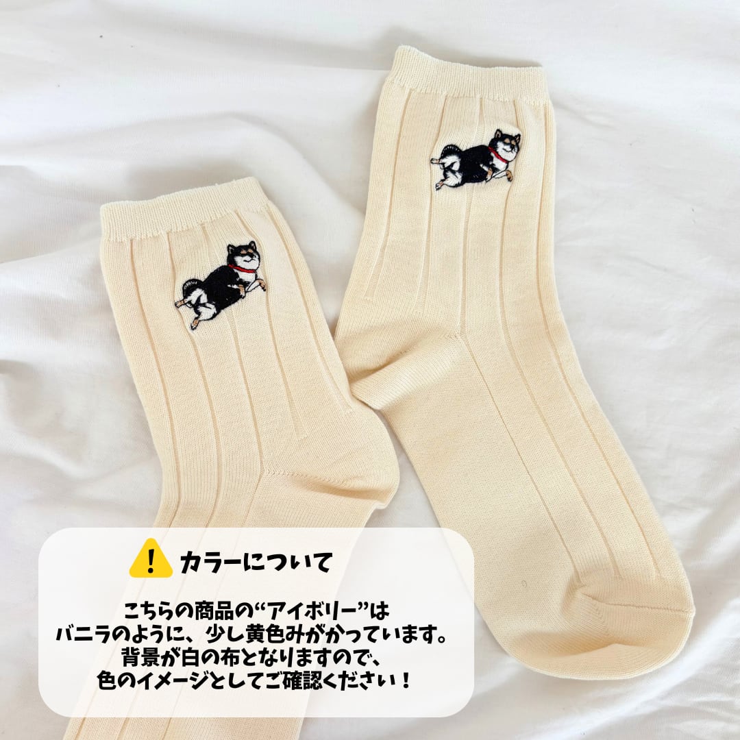 【落ち柴】しばのしるし 今日もどこかで落ちてます。 あの“気を抜きすぎたお昼寝ポーズ”を、 ちいさな刺繍にギュッと閉じ込めました。 まるでお餅のように、どてんと無防備。 ふっと笑って、肩の力も抜けるような一足です。 やさしいアイボリーカラーは、 どんなコーデにもなじみ、通年使いやすい万能カラー♪ ◆仕様 カラー:アイボリー 素材:綿100% サイズ:22.5-24.5cm 製造:日本